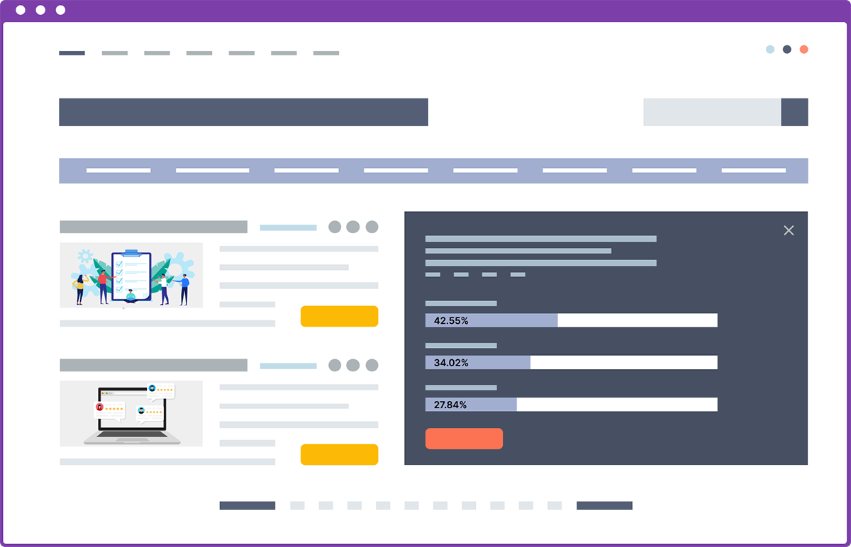 Communicate, explore preferences, get feedback and learn more about your visitors with an instant survey widget that natively integrates to any pages of your web resources.